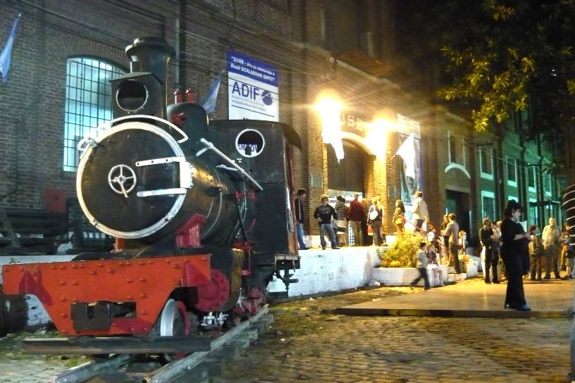 Como parte de La Noche de los Museos, frente al Museo Ferroviario hubo un espectáculo de Tango. Aquí se ve uno de los grupos musicales. (73 KB)