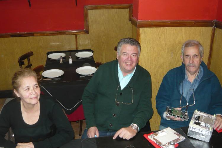 6 de Agosto de 2013: Reunión de los primeros martes de cada mes. Se charlan ideas sobre un transponder o repetidor que permita varias comunicaciones simultaneas para ser incluido en el próximo vuelo. Juan Carlos, LU9DO; Pedro, LU3AIV y Pedro, LU7ABF. |