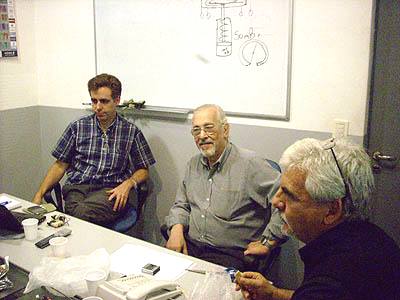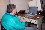 Beatriz, entonces LU1BDB y actualmente LU2BB; Eddy, LU/5N7ET y Alberto, LU1DCX, observan la repeción de gráficos e imágenes del experimento. |