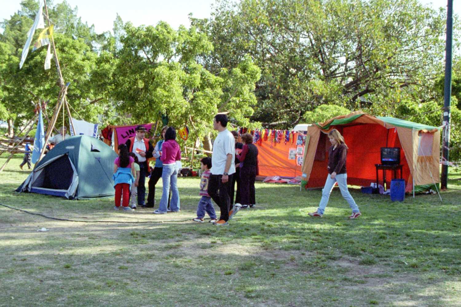 A la izquierda, la Agrupación Scout Santísima Trinidad, a la derecha: la carpa en la cual exhibimos videos de nuestra institución y de la actividad de los radioaficionados en general. En el medio: David, LU4AXU, y familia. (210 KB)